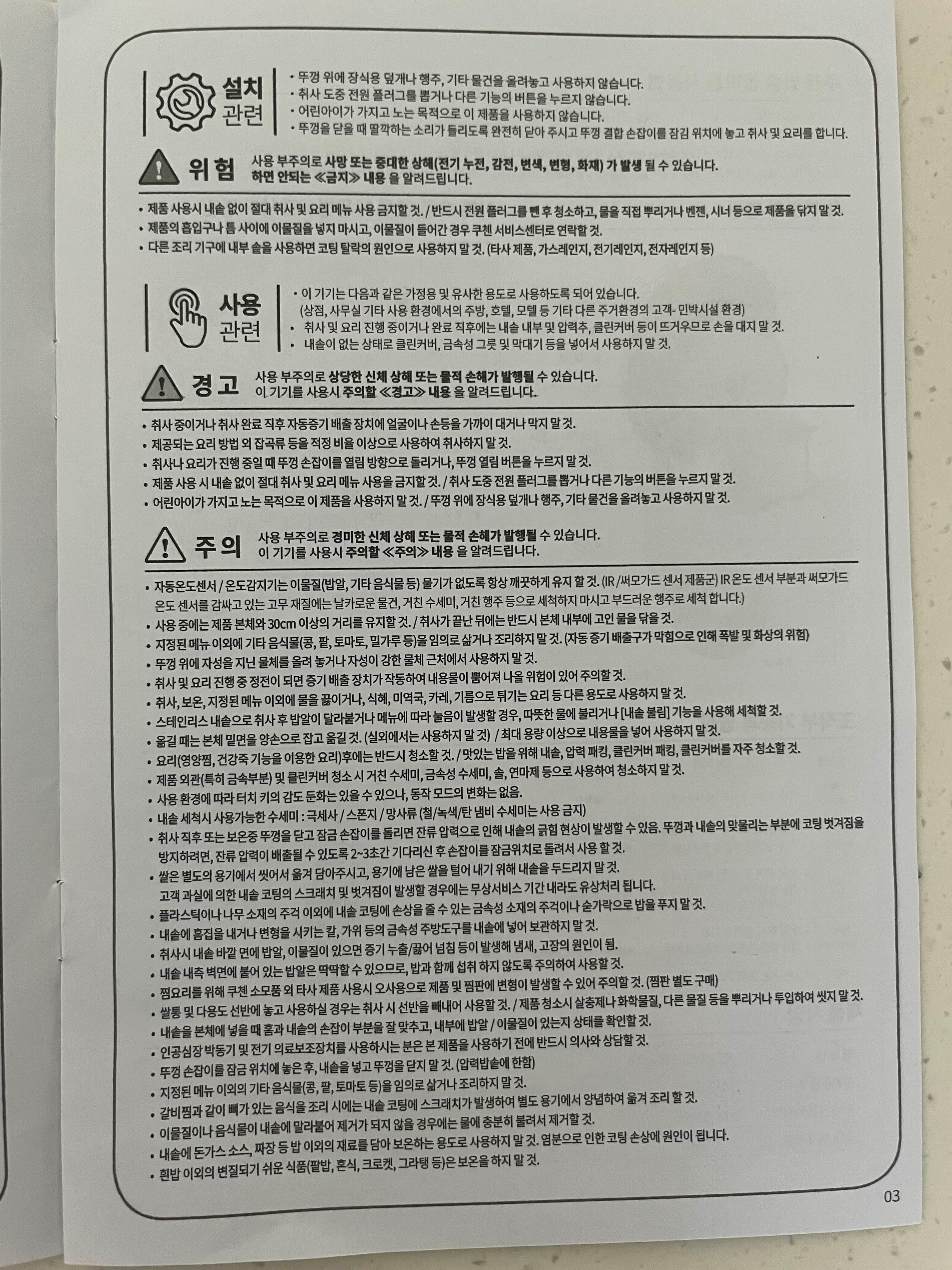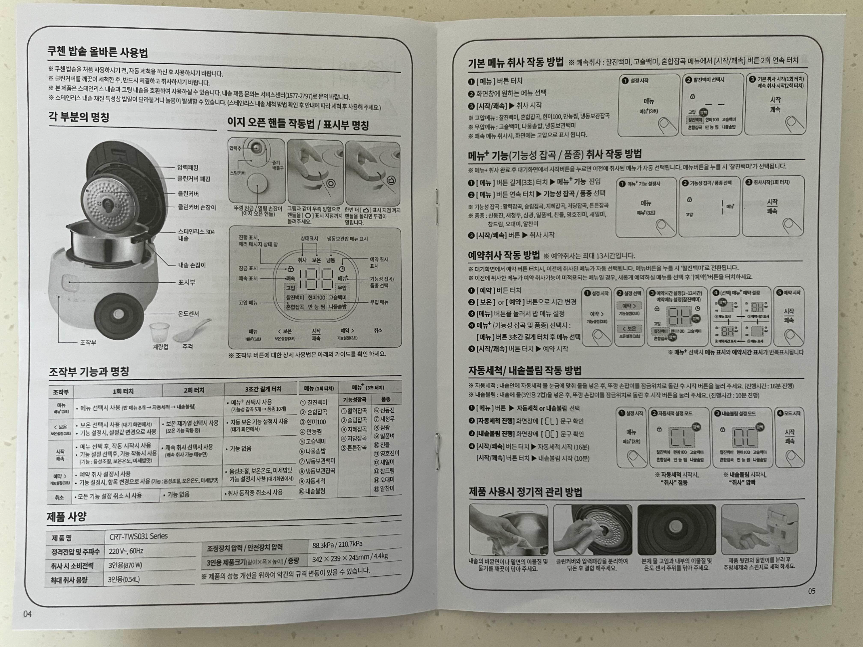 밥솥 사용설명서